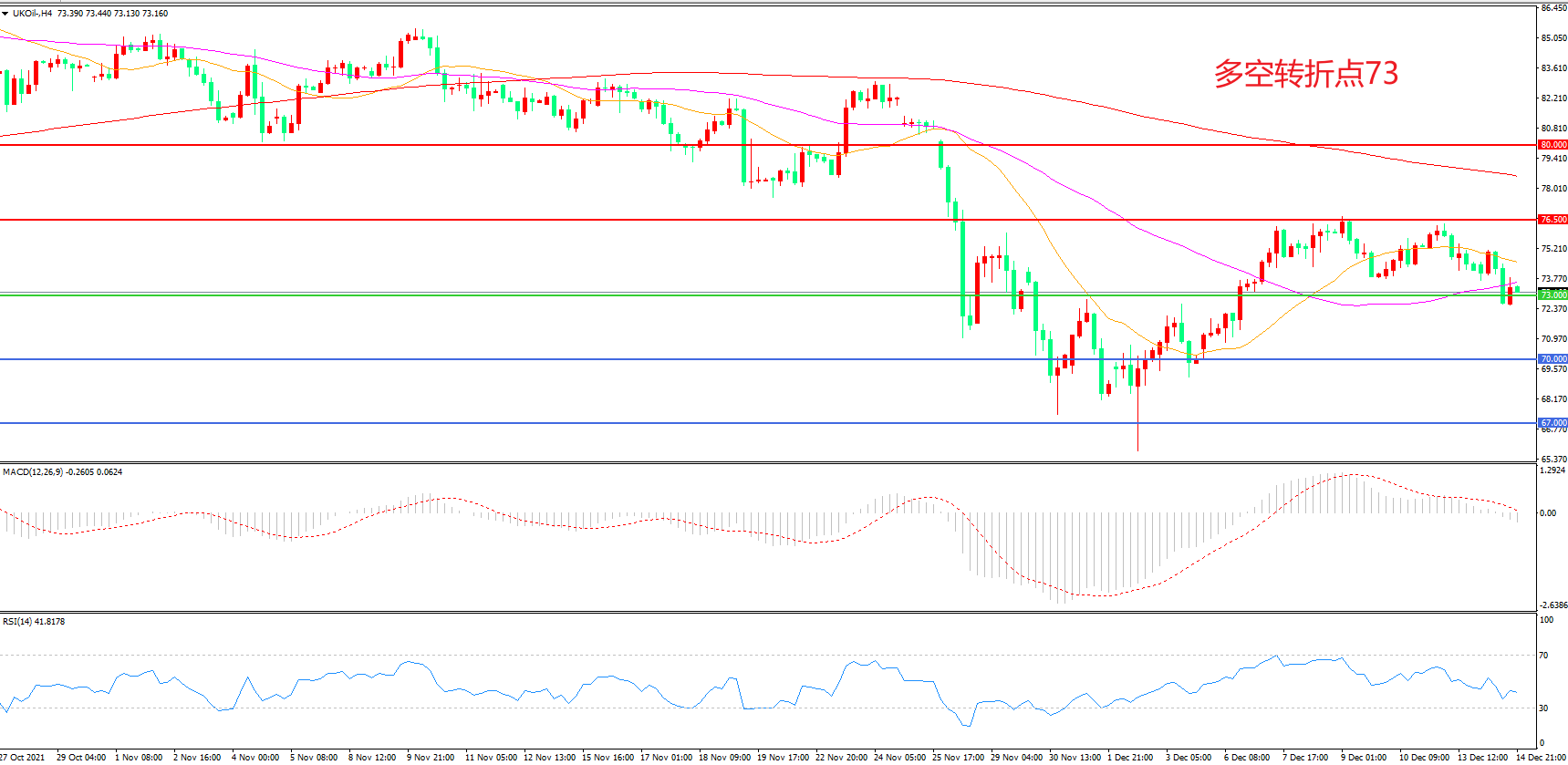 备选策略:在73.00之下看跌,目标70.00 67.00
