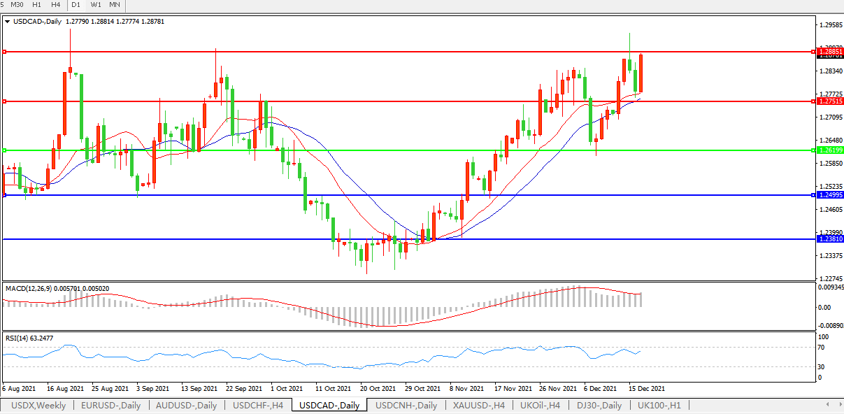 美元兑加元USDCAD 日线图: