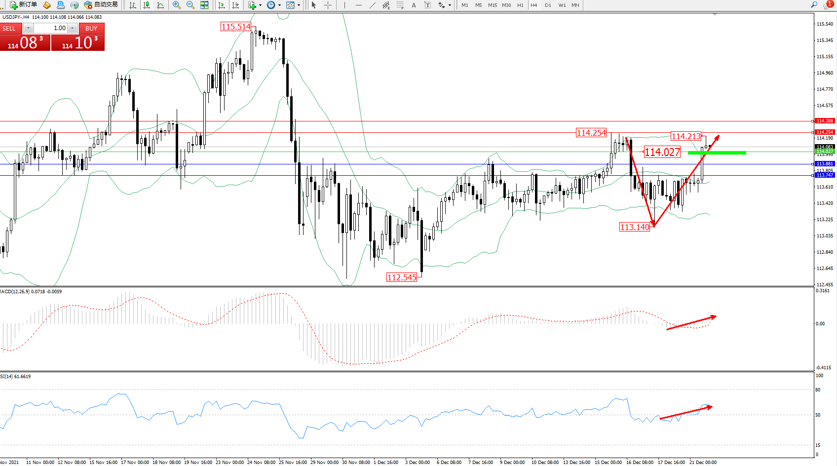 交易策略:114.027上方看涨,目标114.254、114.388