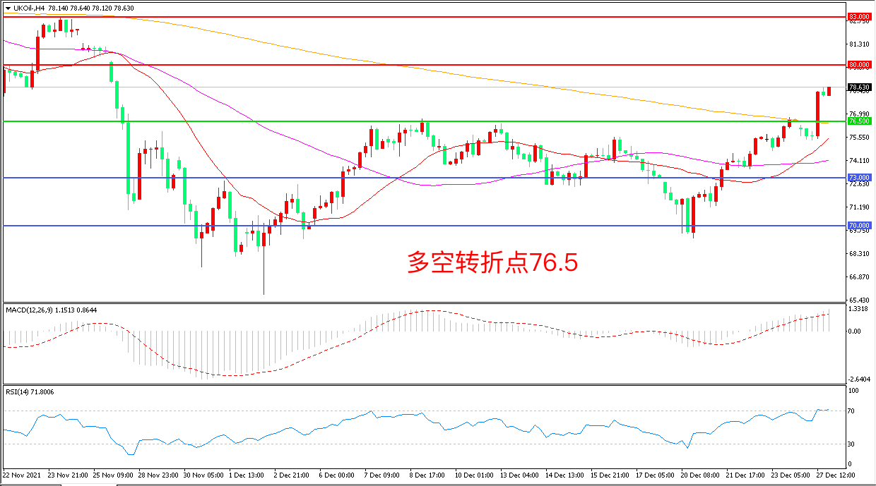 交易策略:在76.50之上看涨,目标80. 00 83.00