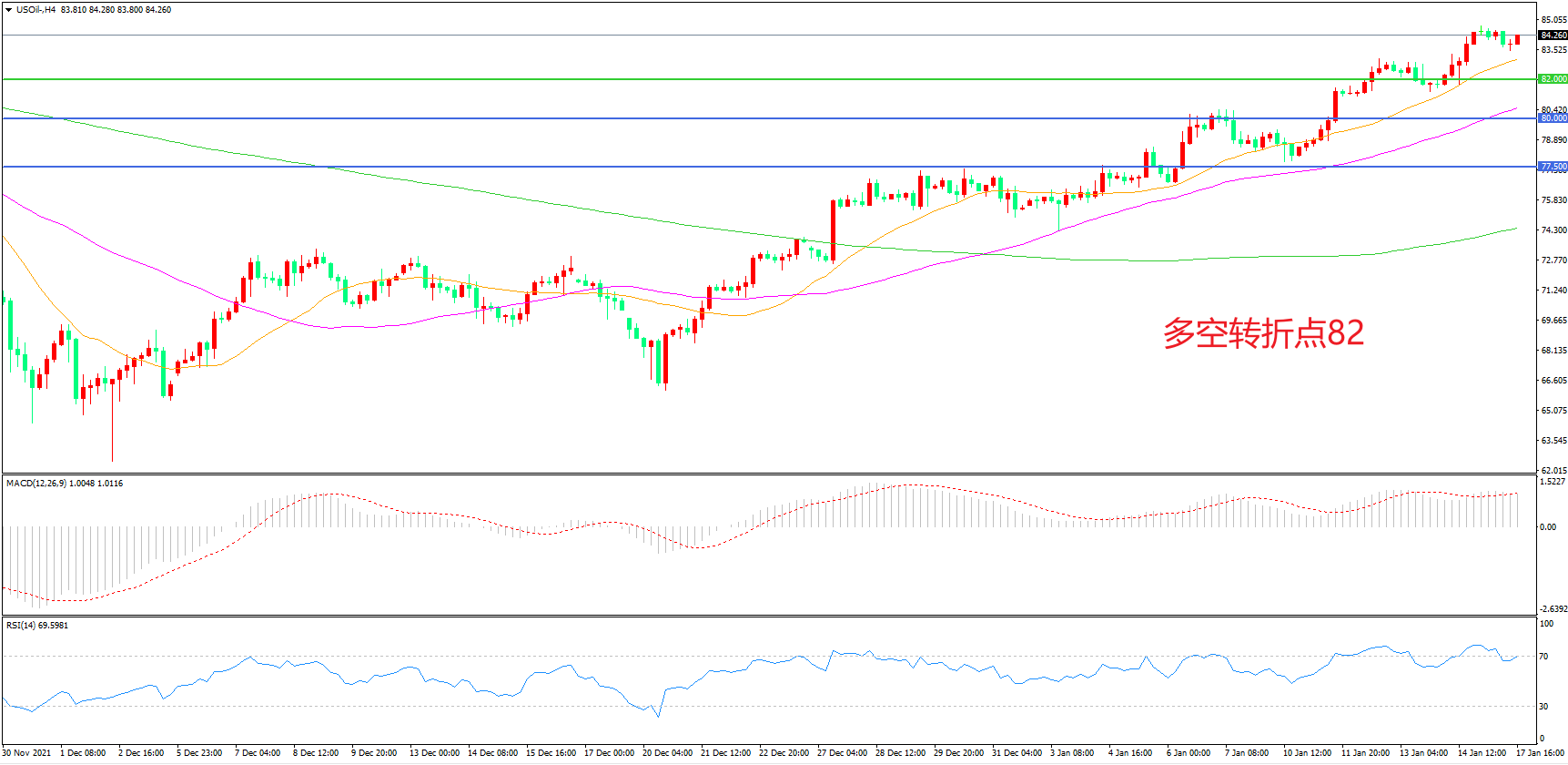 交易策略:在82.00之上看涨,目标85.00 88.00