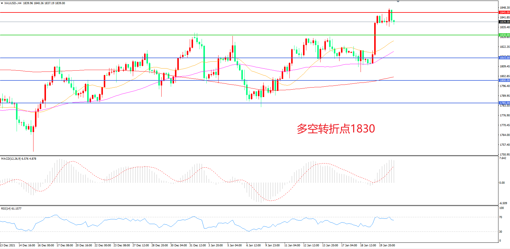交易策略:在1830.00之上看涨,目标1845.00       1860.00
