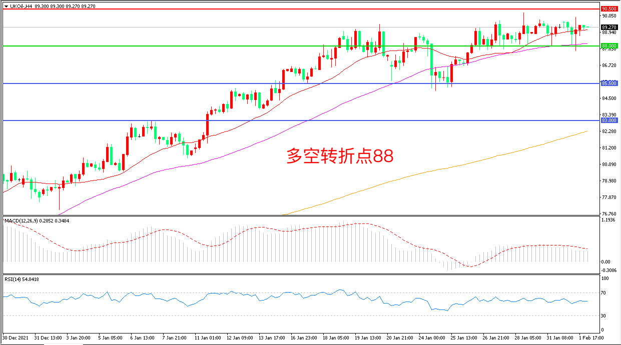 交易策略:在88.00之上看涨,目标90.50 93.00