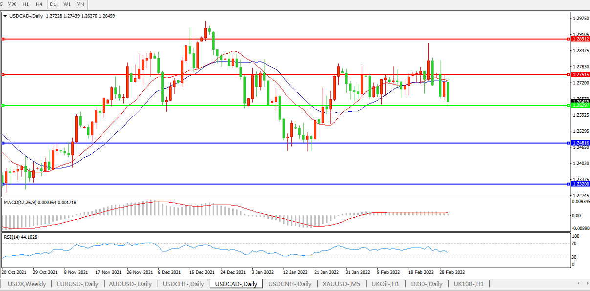 美元兑加元USDCAD 日线图: