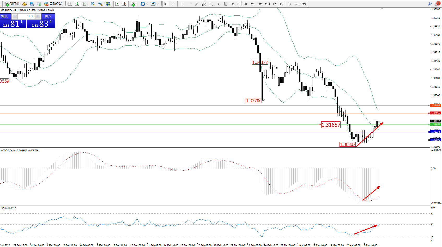 交易策略:1.31657上方看涨,目标1.32156、1.32484