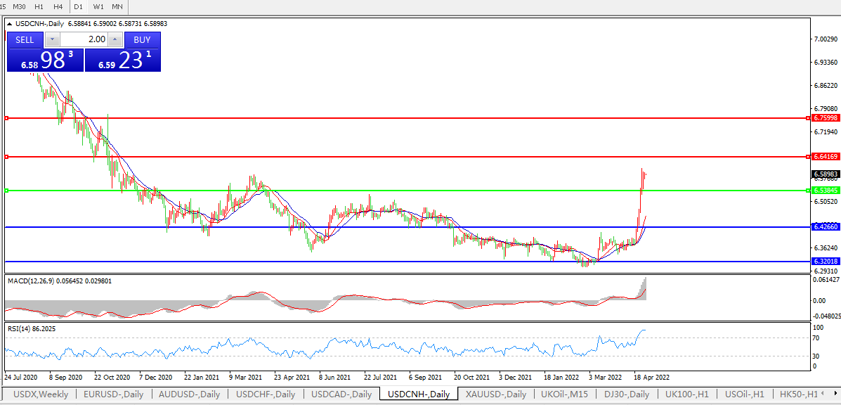 美元料继续维持强势。随着风险资产显示出不稳定性,而且现在市场相信美联储积极收紧政策,美元或已找到底部。试图预测美元顶部不容易,因为市场很大程度上定价美联储进入紧缩政策周期,而美联储也基本认可了市场对其的鹰派定价,因此市场对美联储态度重新定价风险不大,美元指数DXY突破并维持在103水平之上态势不变。