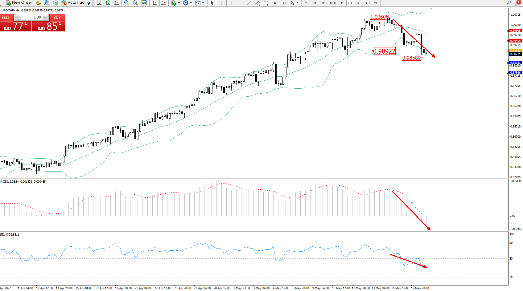 交易策略:0.98922下方看跌,目标0.98331、0.97846