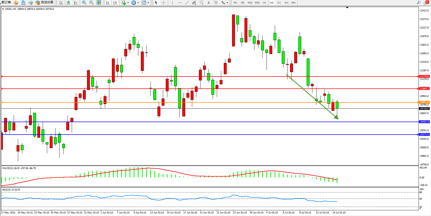 恒指HK50 4小时图