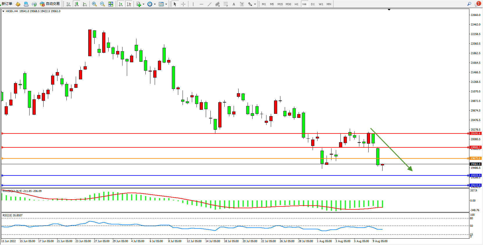 恒指HK50 4小时图