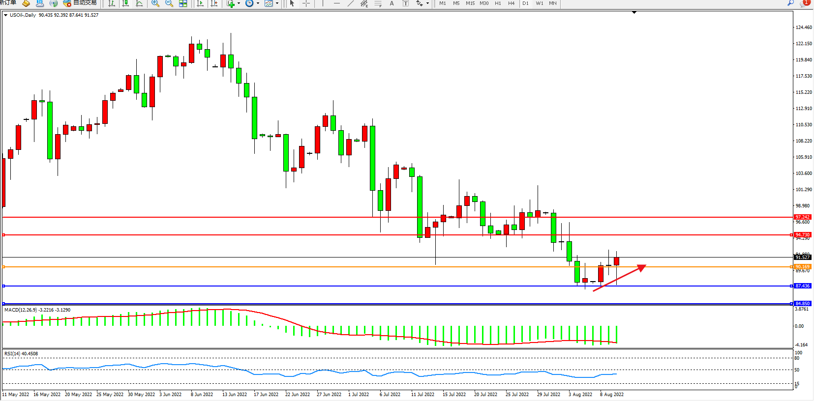 美油:低位弱势整理上移