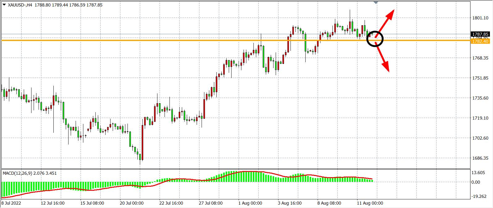 备选策略:在1782.00之下看跌,目标1770.00           1755.00