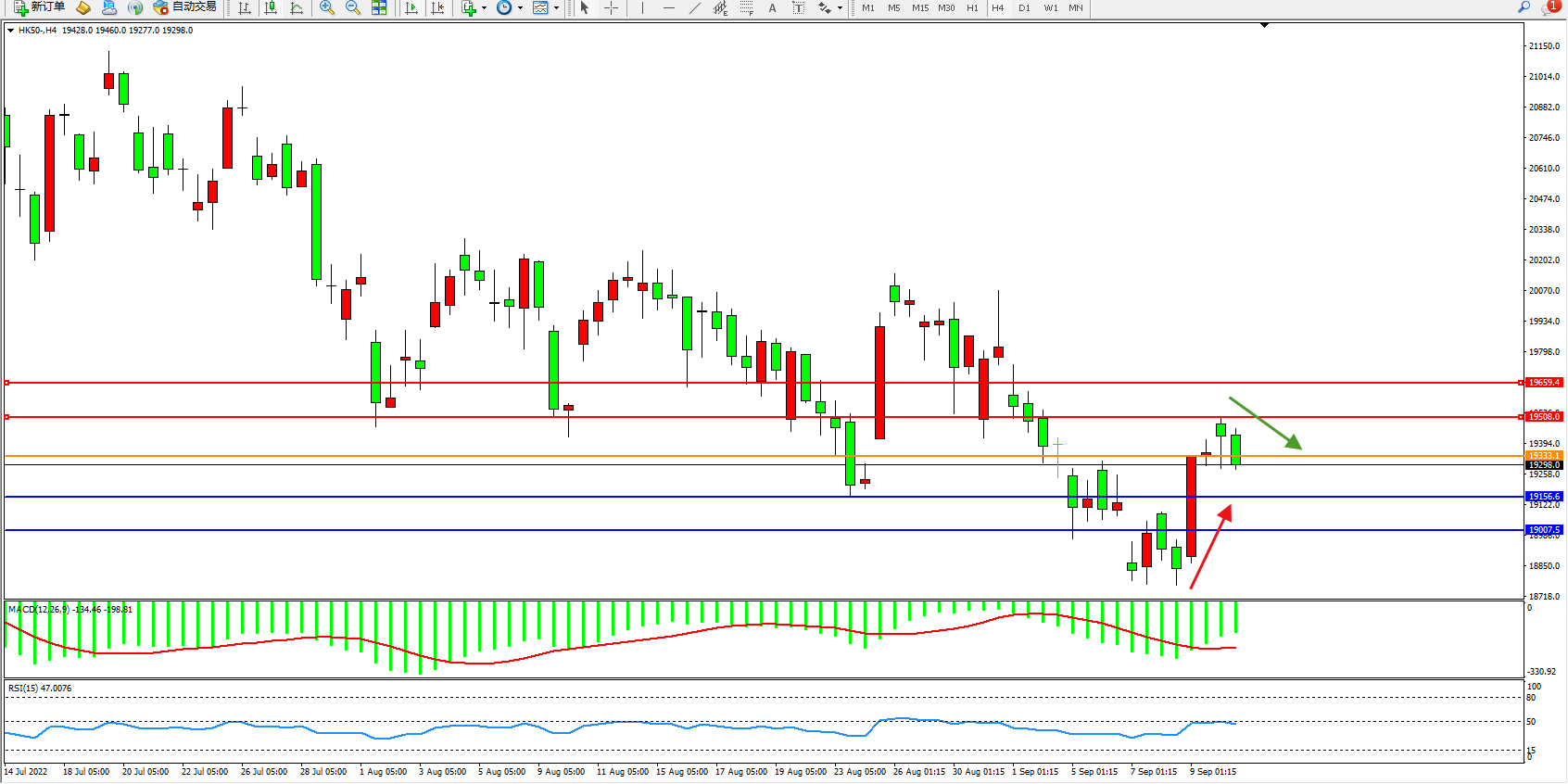 恒指HK50 4小时图