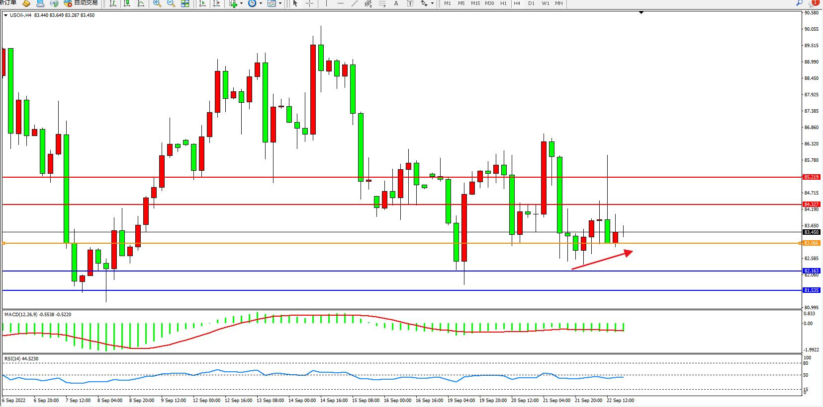 交易策略:83.066下方看跌,目标82.163、81.535