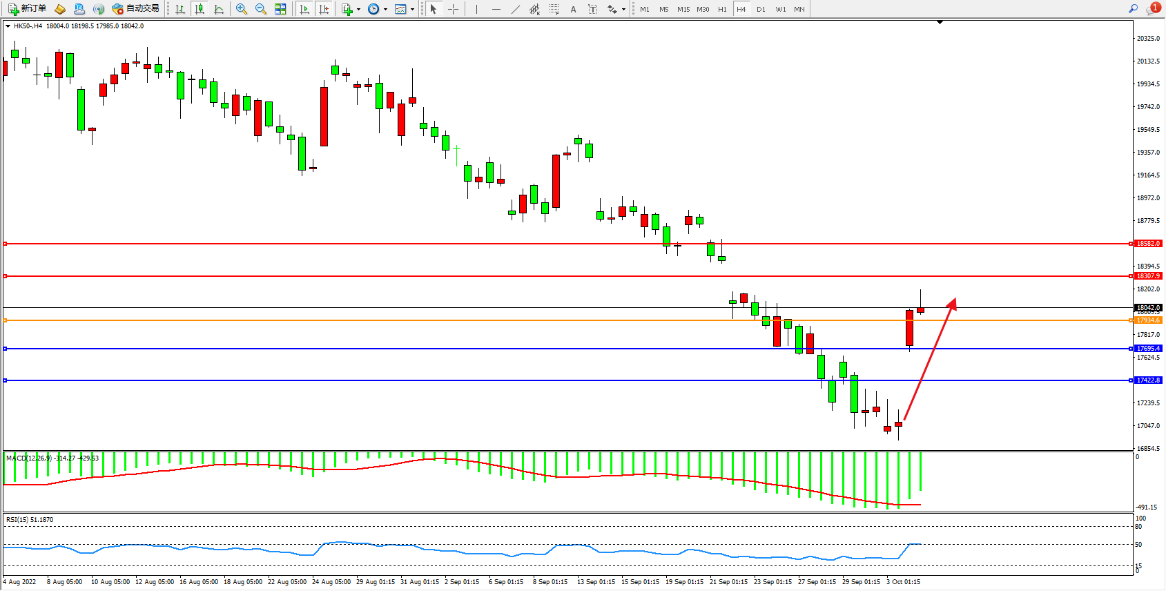 恒指HK50 4小时图