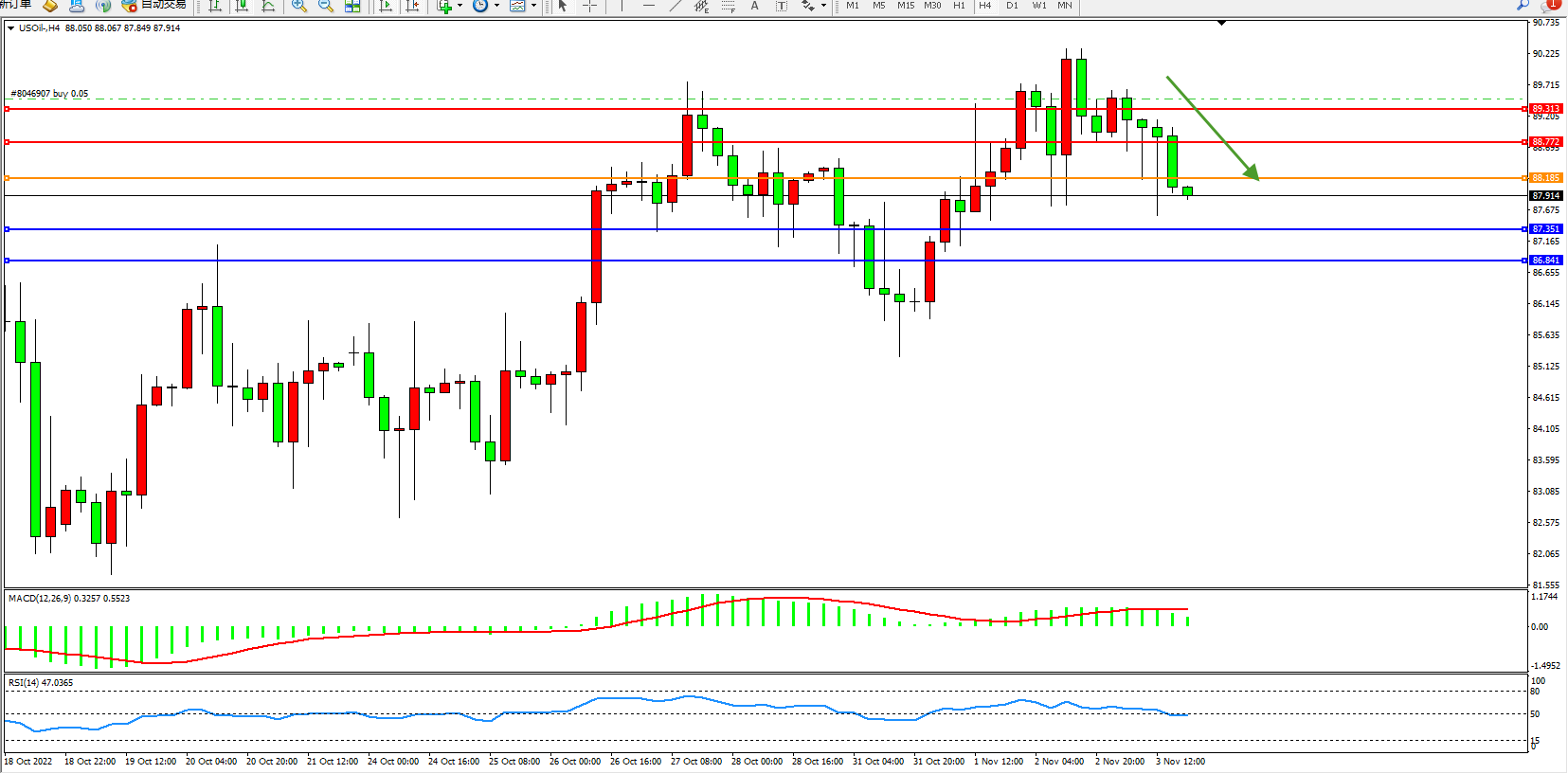 原油维持87.914附近震荡,美联储继续激进加息推高美元,并加剧对全球经济衰退将抑制燃料需求的担忧。但对供应紧张的忧虑限制了跌幅,油价仍暂时看涨。