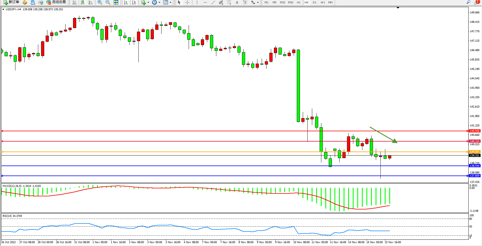 交易策略:139.501下方看跌,目标138.540、137.859