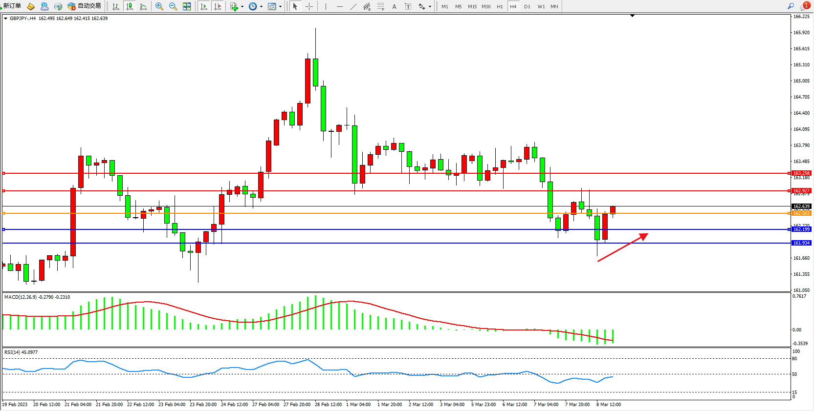 备选策略:162.503下方看跌,目标162.199 161.934