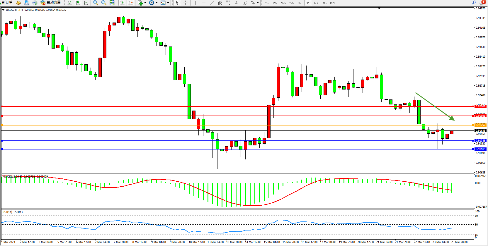 美元兑瑞郎维持0.91638附近震荡,瑞士至3月23日央行政策利率 1.5%,预期1.50%,前值1.00%。瑞士央行加息50个基点至1.50%,符合市场预期,利率达2008年10月以来最高水平。