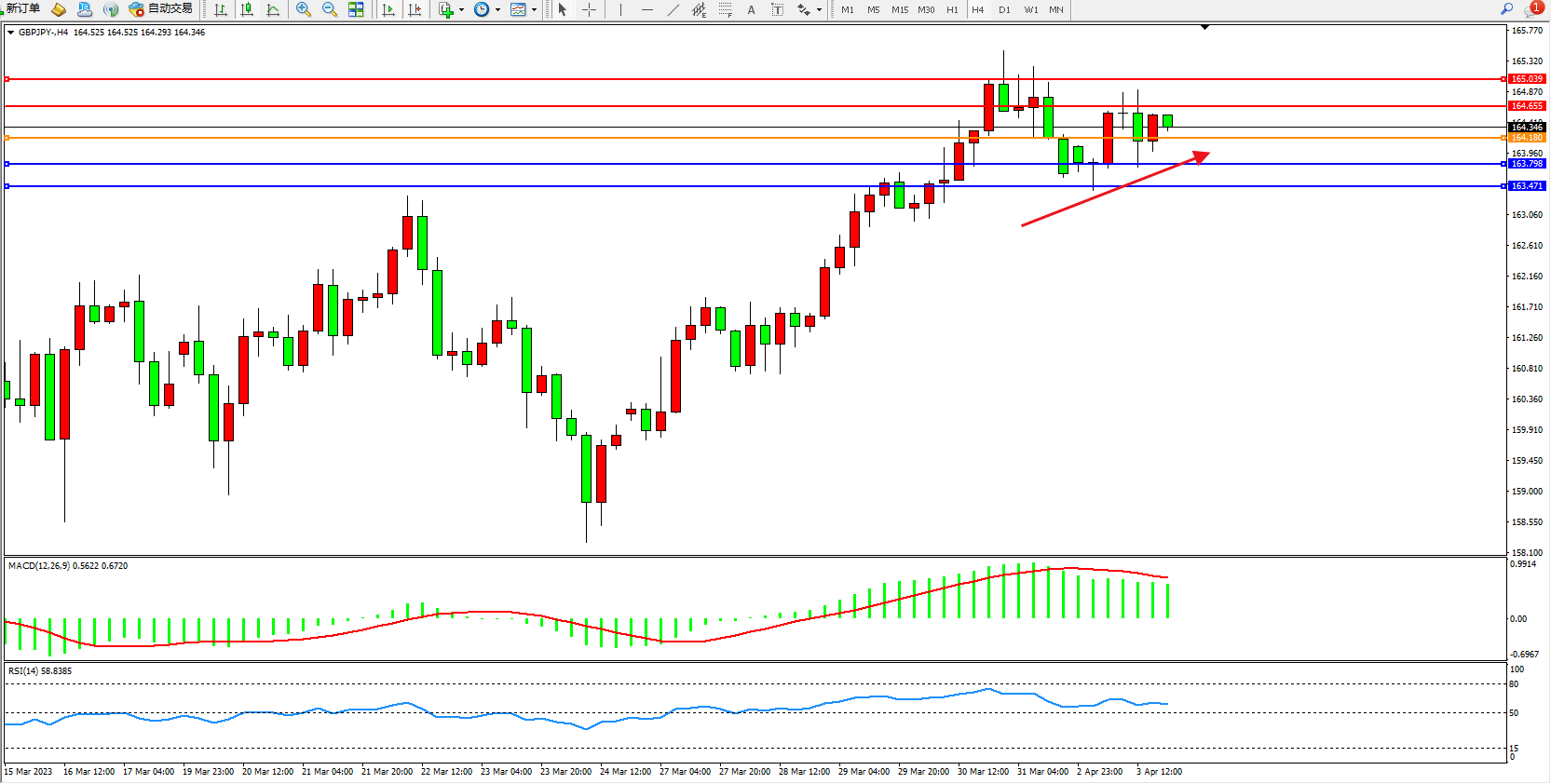 阻力位:164.655 165.039