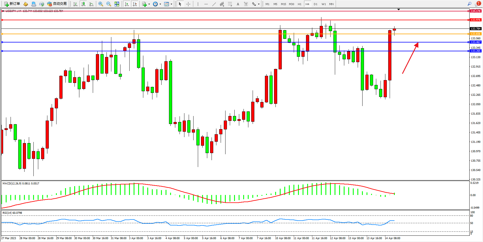 支撑位:133.467  133.265