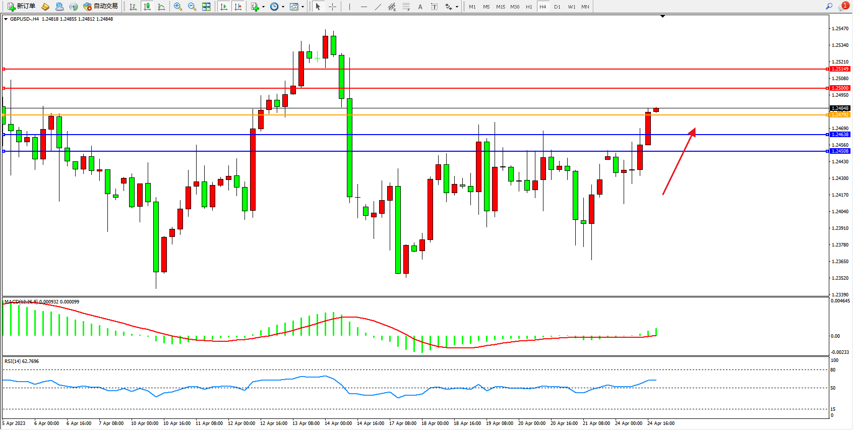 交易策略:1.24792上方看涨,目标1.25000 1.25149