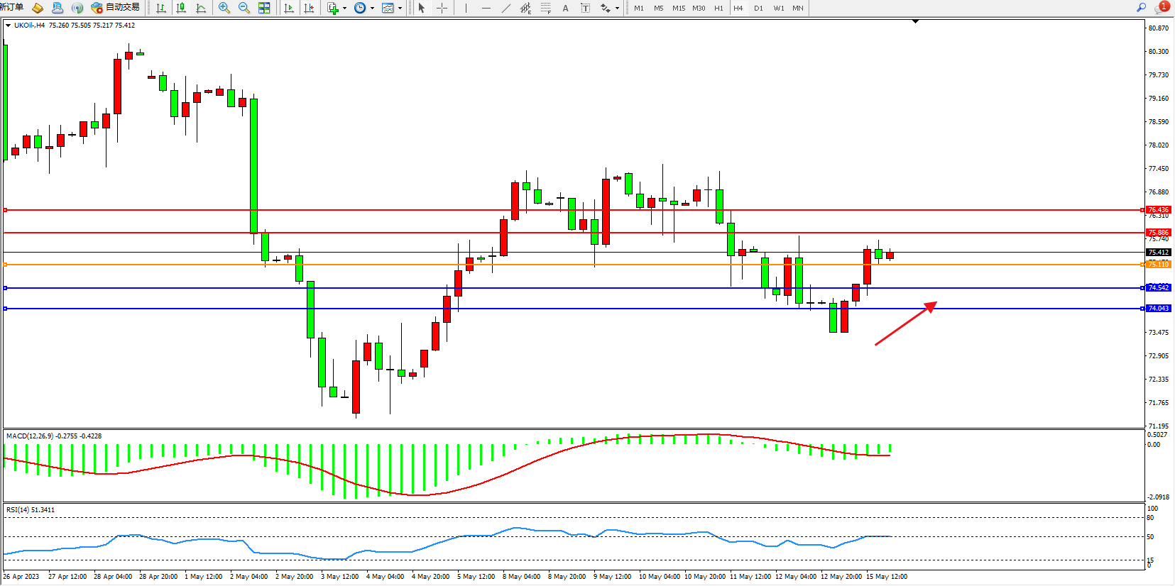 布油UKOil——4小时K线图显示: