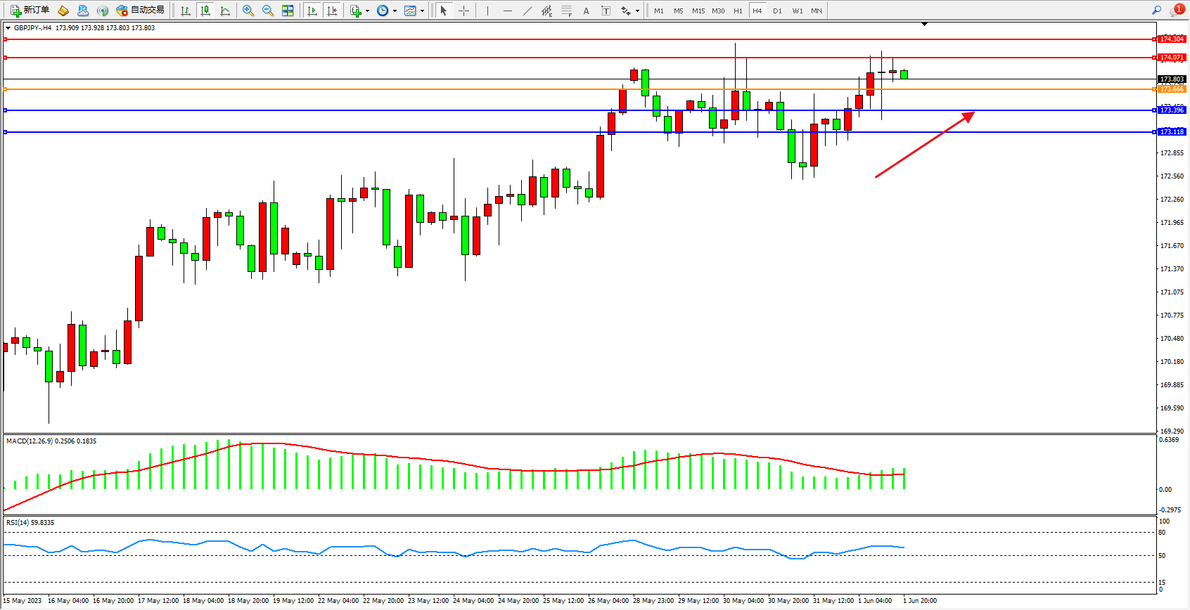 阻力位:174.071  174.304