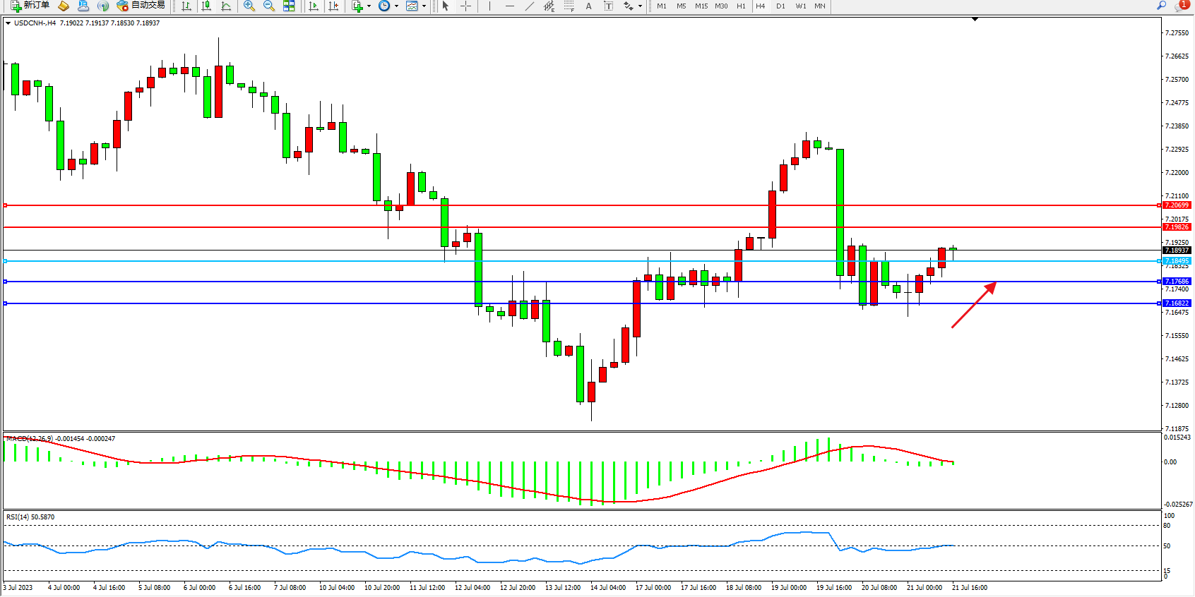 交易策略:7.18495上方看涨,目标7.19826 7.20699