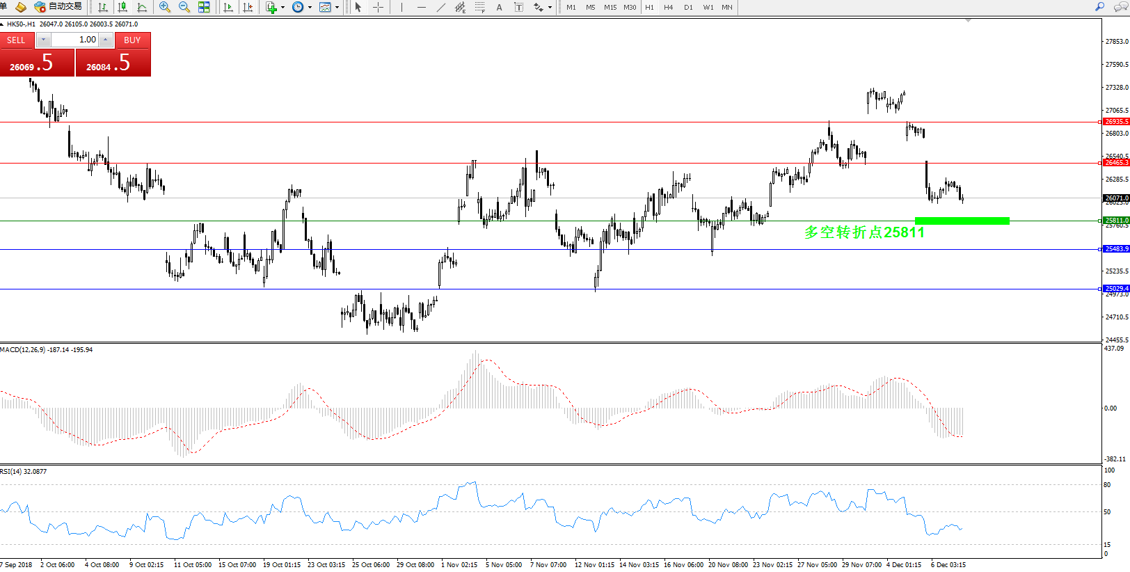恒指HK50 ——1小时K线图显示: