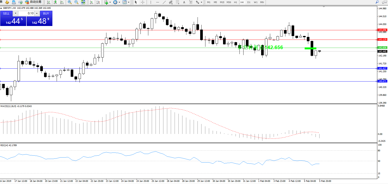 交易策略:142.656下方看跌,目标141.427、140.671
