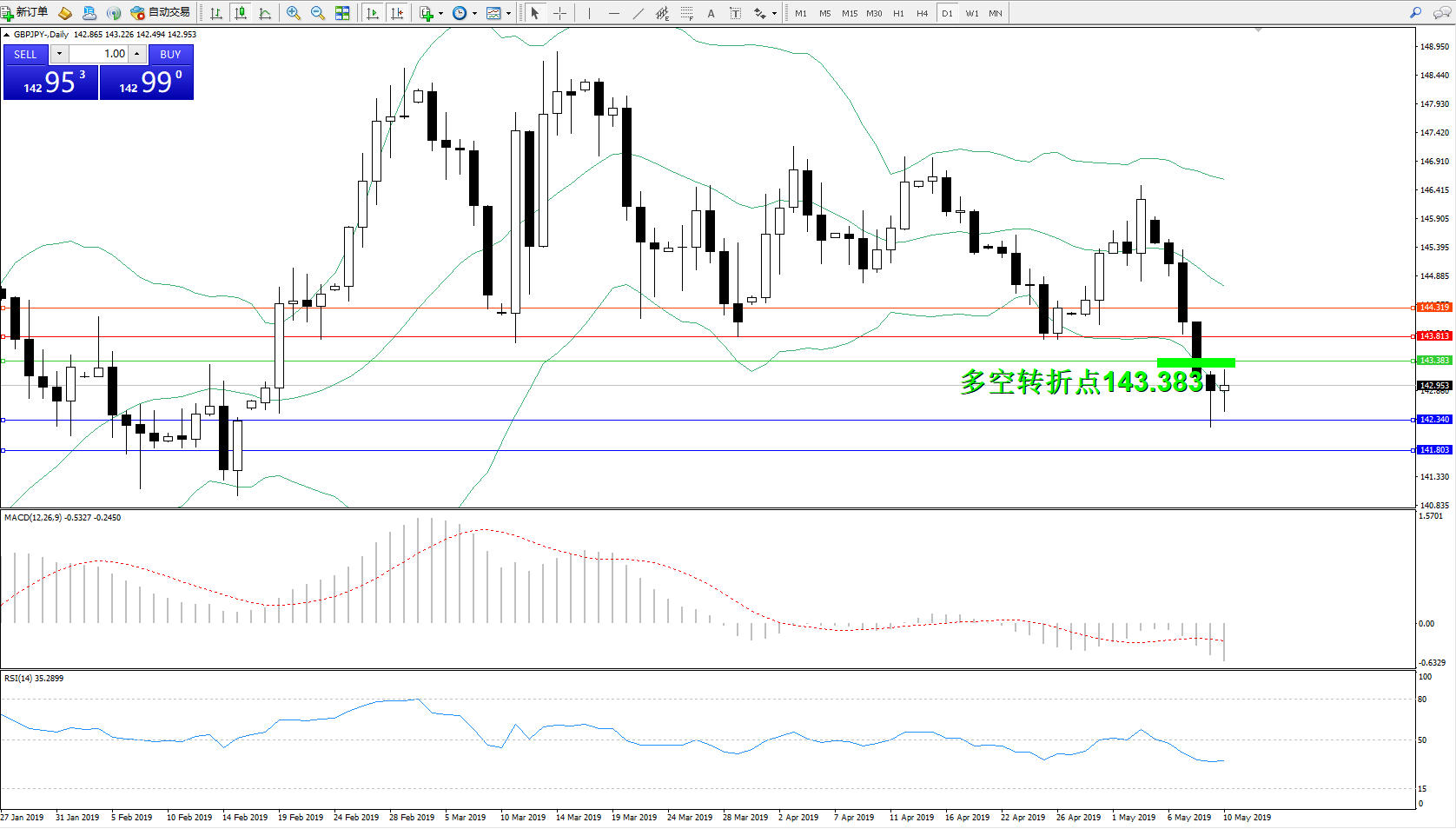 交易策略:143.383下方看跌,目标142.340141.803
