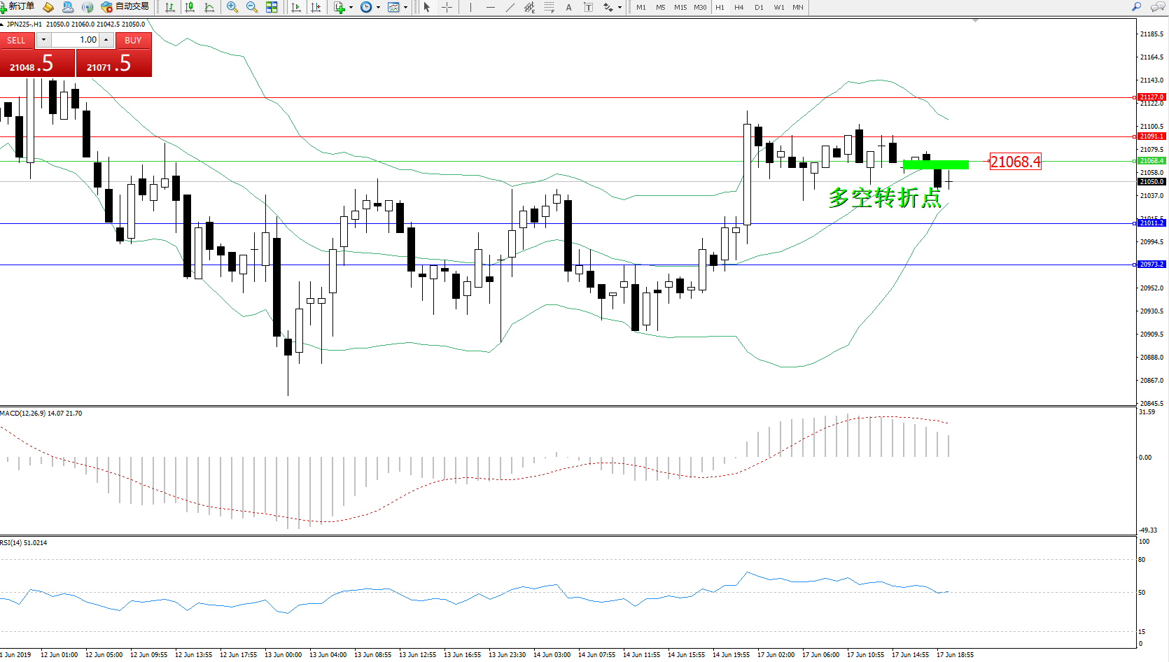 日经225指数6月17日(周一)收盘上涨14.61点,涨幅0.07%,报21131.50点。造纸业和纸浆、铁路和客车和房地产等上涨的板块带领股指走高。日本短期国债价格下滑,追随美债跌势,在美联储利率决议和日本央行政策决议公布前,市场整体较为低迷。预计日本央行本周将保持其宽松计划不变,同时如果贸易等风险对国内温和扩张的经济构成威胁,日本央行预计将准备加大对货币政策的支持力度。日本央行亦将于周三、四举行货币政策会议,周四公布结果,大华银行预期将维持利率政策不变,将重申将在较长一段时间内,保持目前极低水平的短期及长期利率,至少到2020年春季前后。