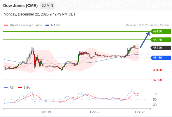 在 48460 之上,看涨,目标价位为 48920 ,然后为 49130 。