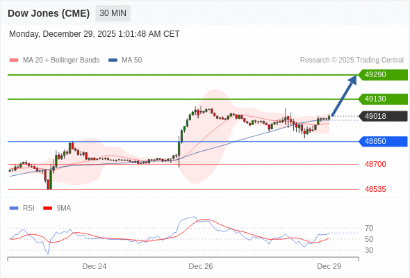 在 48850 之上,看涨,目标价位为 49130 ,然后为 49290 。