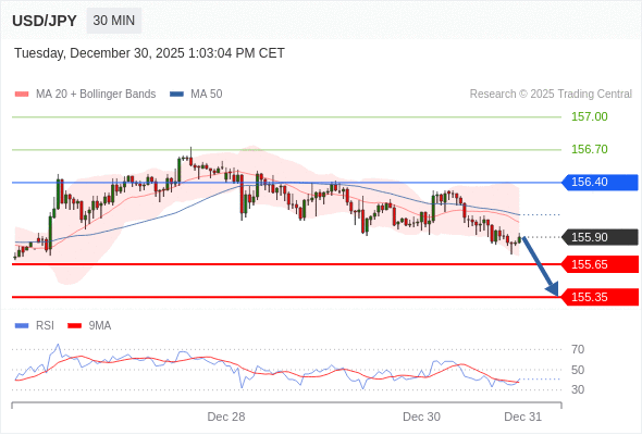 在 156.40 之下,看跌,目标价位为 155.65 ,然后为 155.35 。
