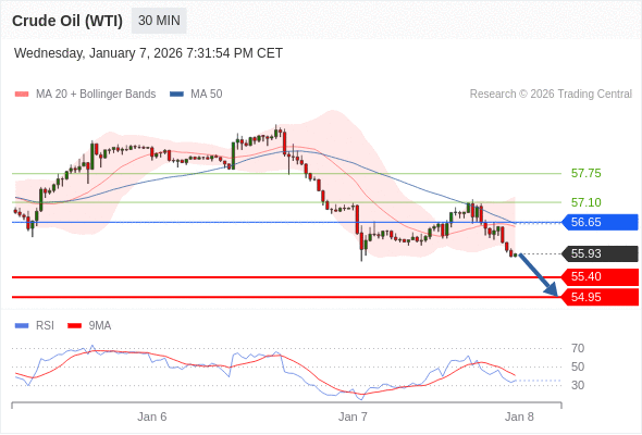 在 56.65 之下,看跌,目标价位为 55.40 ,然后为 54.95 。