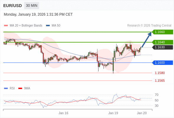 交易策略: 在 1.1600 之上,看涨,目标价位为 1.1640 ,然后为 1.1660 。
