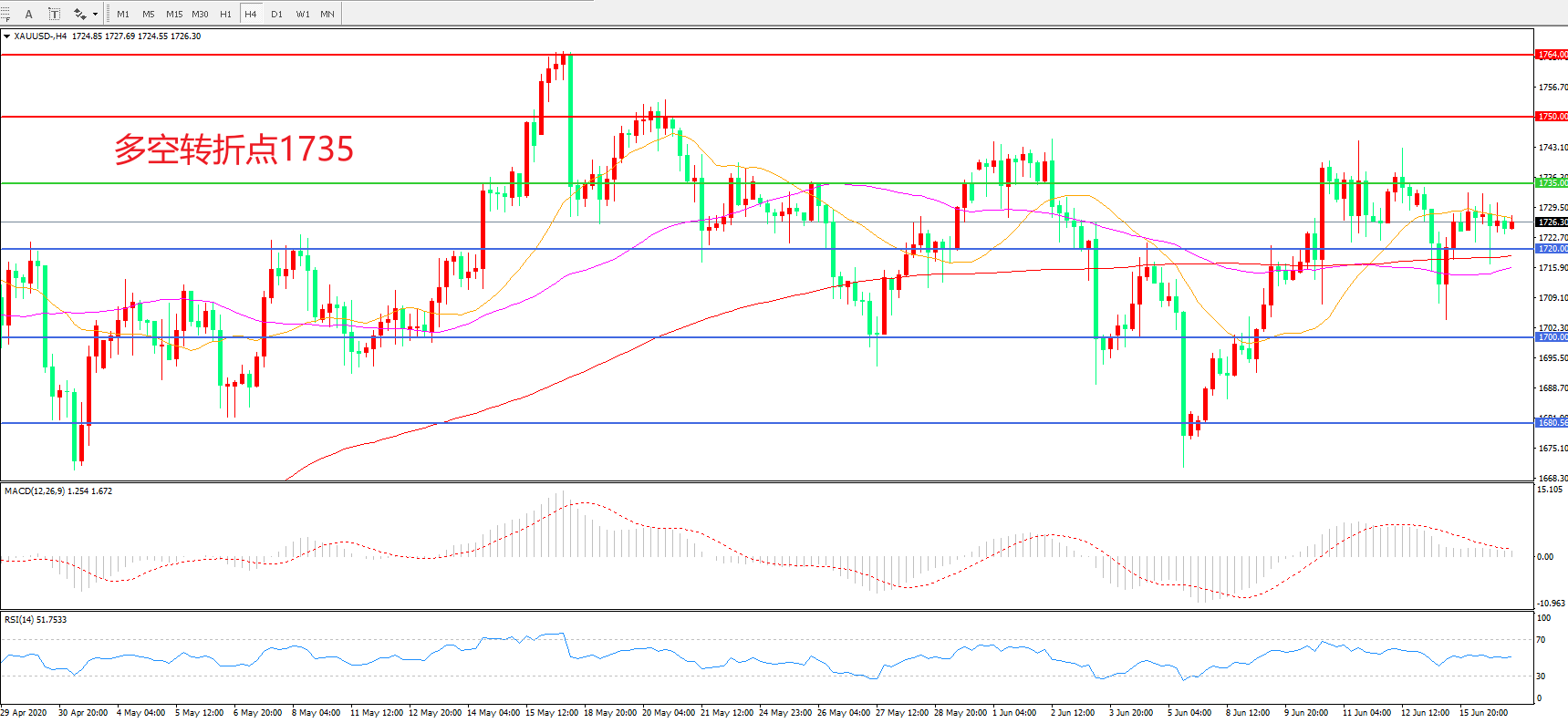 交易策略:在1735.00之下看跌,目标1720.00 1700.00