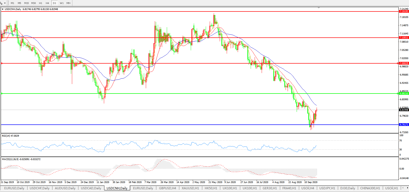 人民币兑美元即期周三收跌并与中间价均创逾一周新低,盘中汇价逼近6.8关口;交易员称,欧洲疫情二次爆发明显打压欧元和英镑多头人气,美指继续被动上行,但人民币亦未跌破6.8元关口;周四将公布中国债券能否纳入富时世界国债指数(WGBI); 周二公布的数据显示美国8月成屋销售升至近14年高位,这对美元构成提振,但美联储官员的讲话发出矛盾信号;芝加哥联储主席埃文斯周二表示,美国经济将面临更长、更慢的复苏和“衰退动能”大大增强的风险;他还表示,美联储有可能在平均通胀率达到2%之前升息;