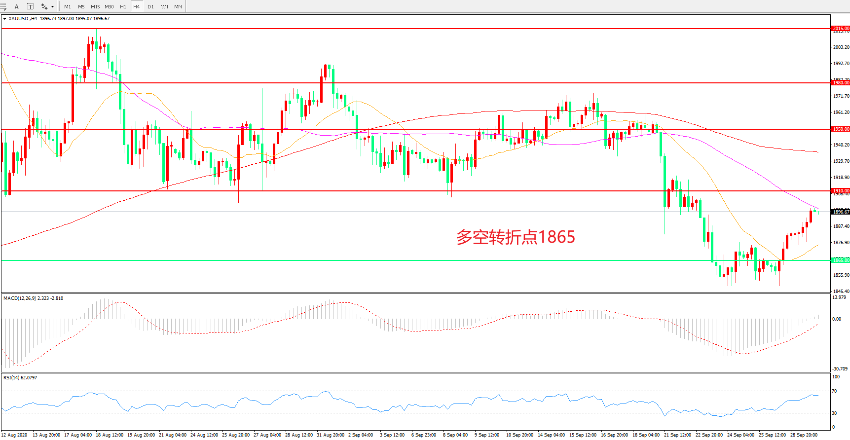 多空转折点:1865.00