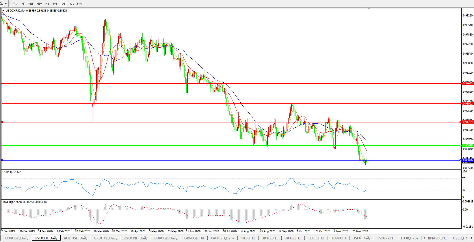 美元兑瑞郎USDCHF 日线图: