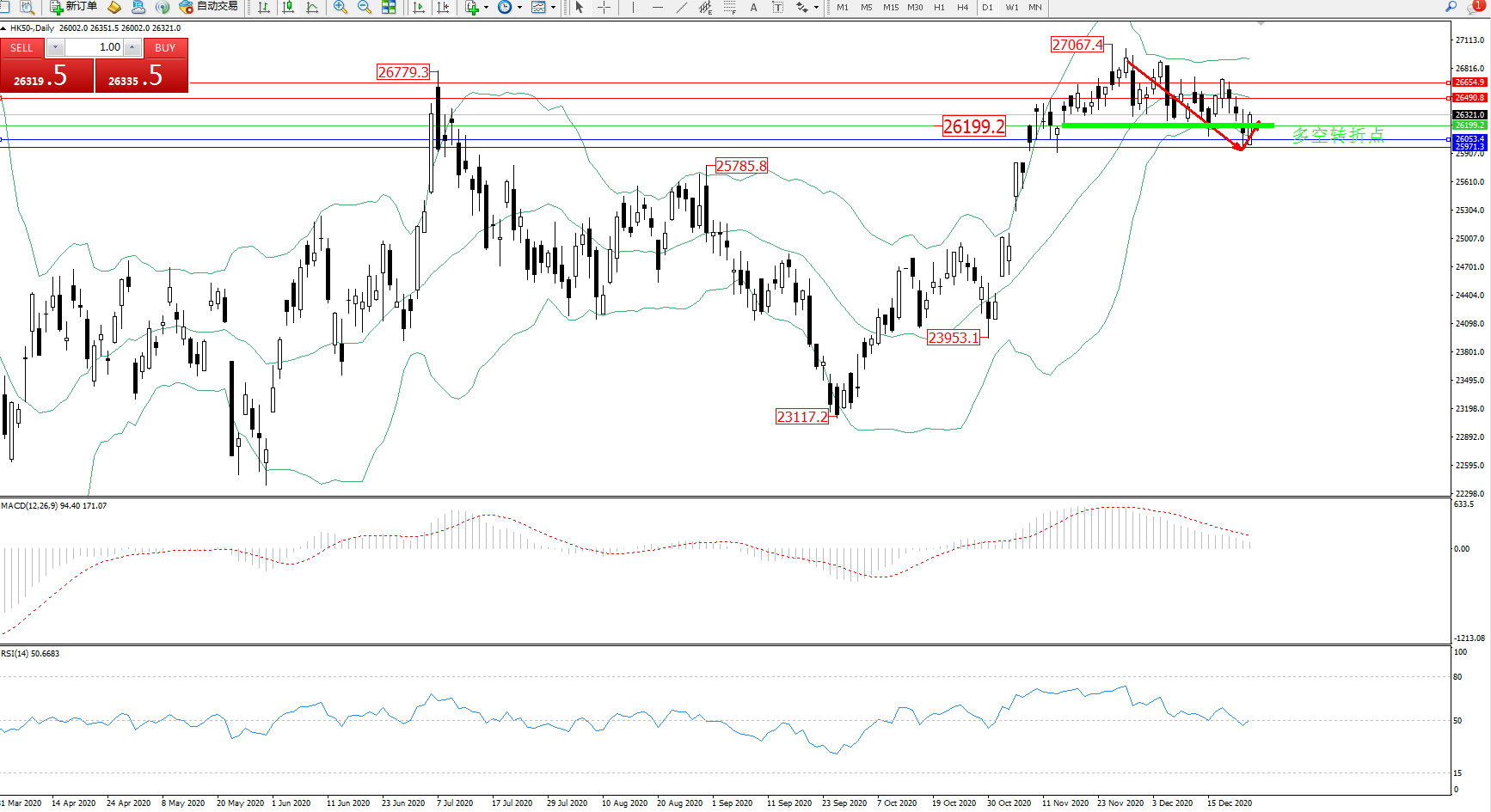 恒指HK50 ——日K线图显示: