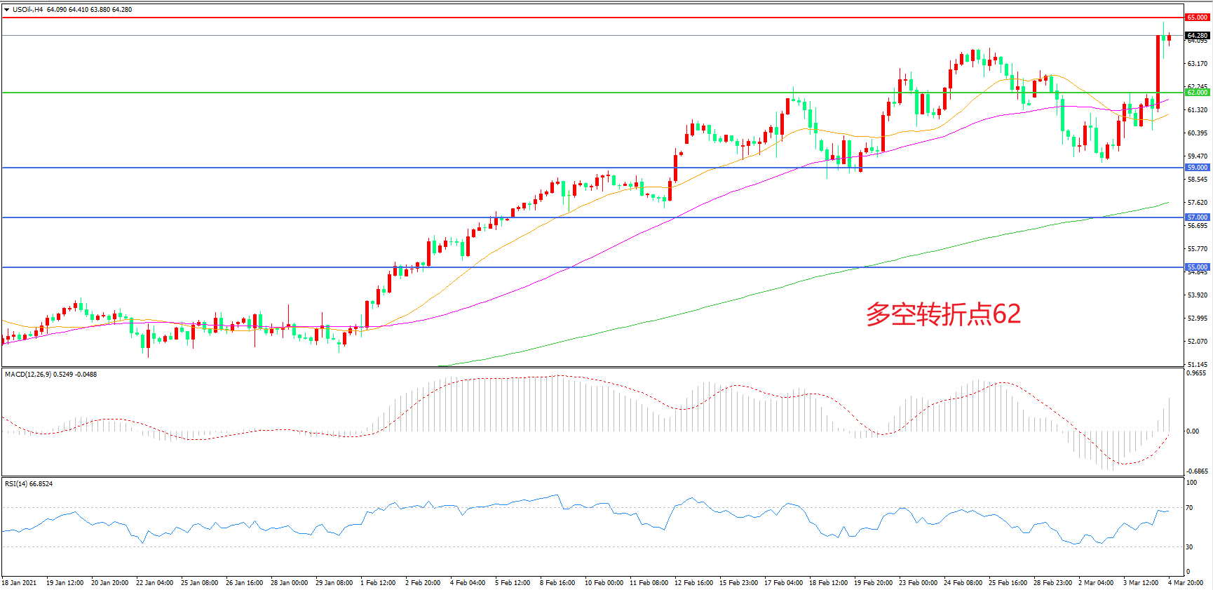 交易策略:在62.00之上看涨,目标65.00 68.00
