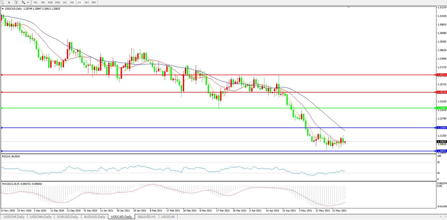 美元兑加元USDCAD    日线图: