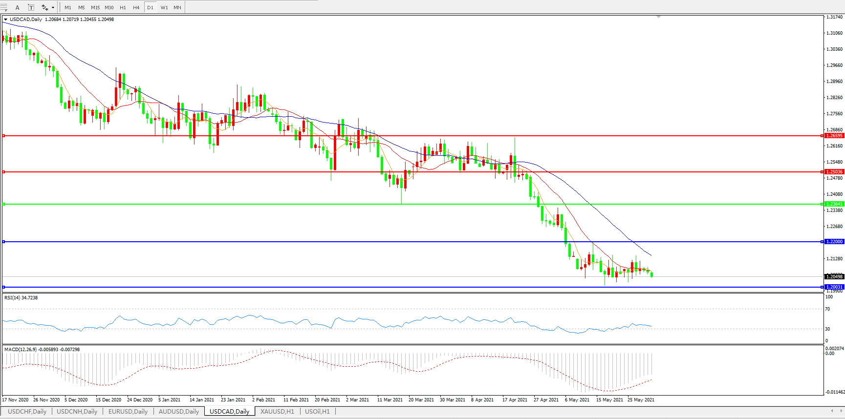 美元兑加元USDCAD    日线图: