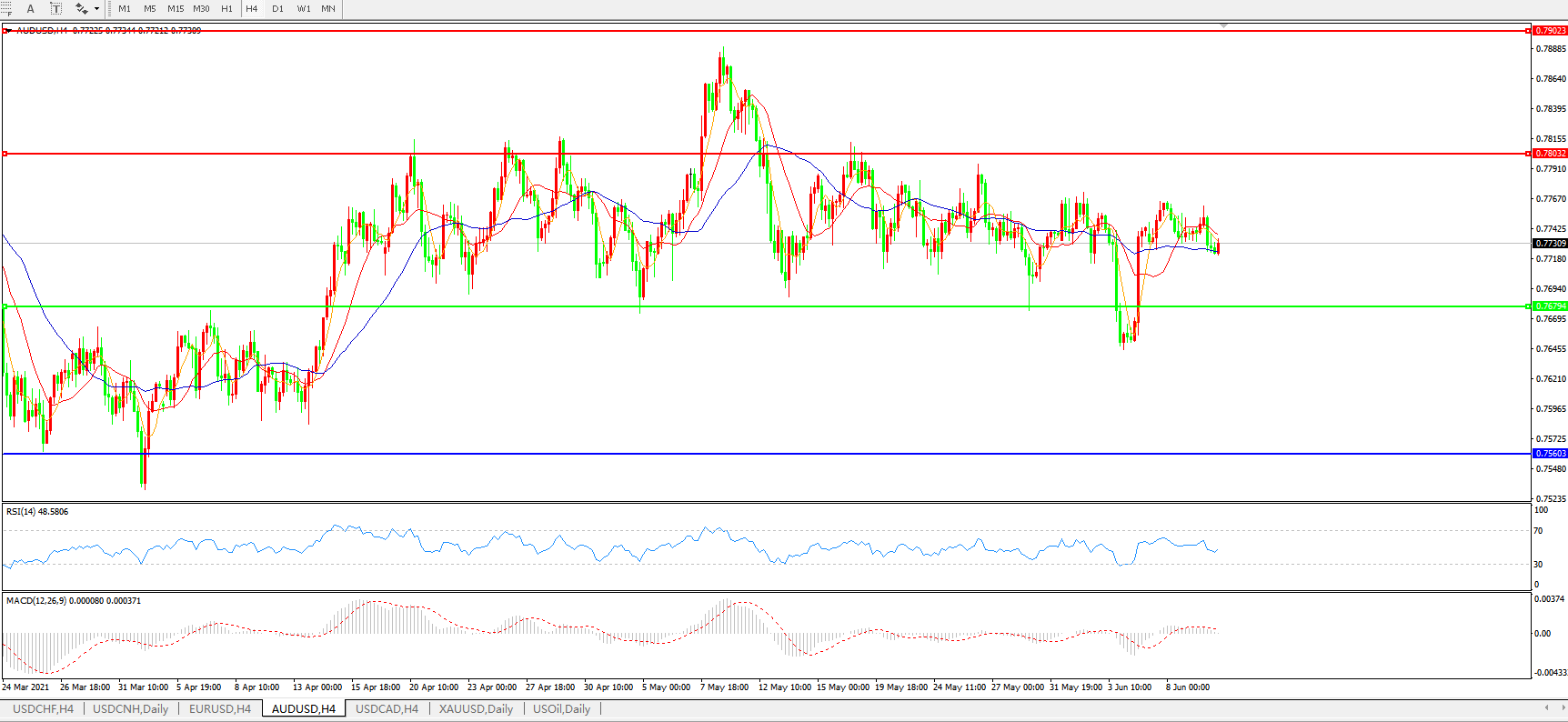 AUDUSD 4小时图: