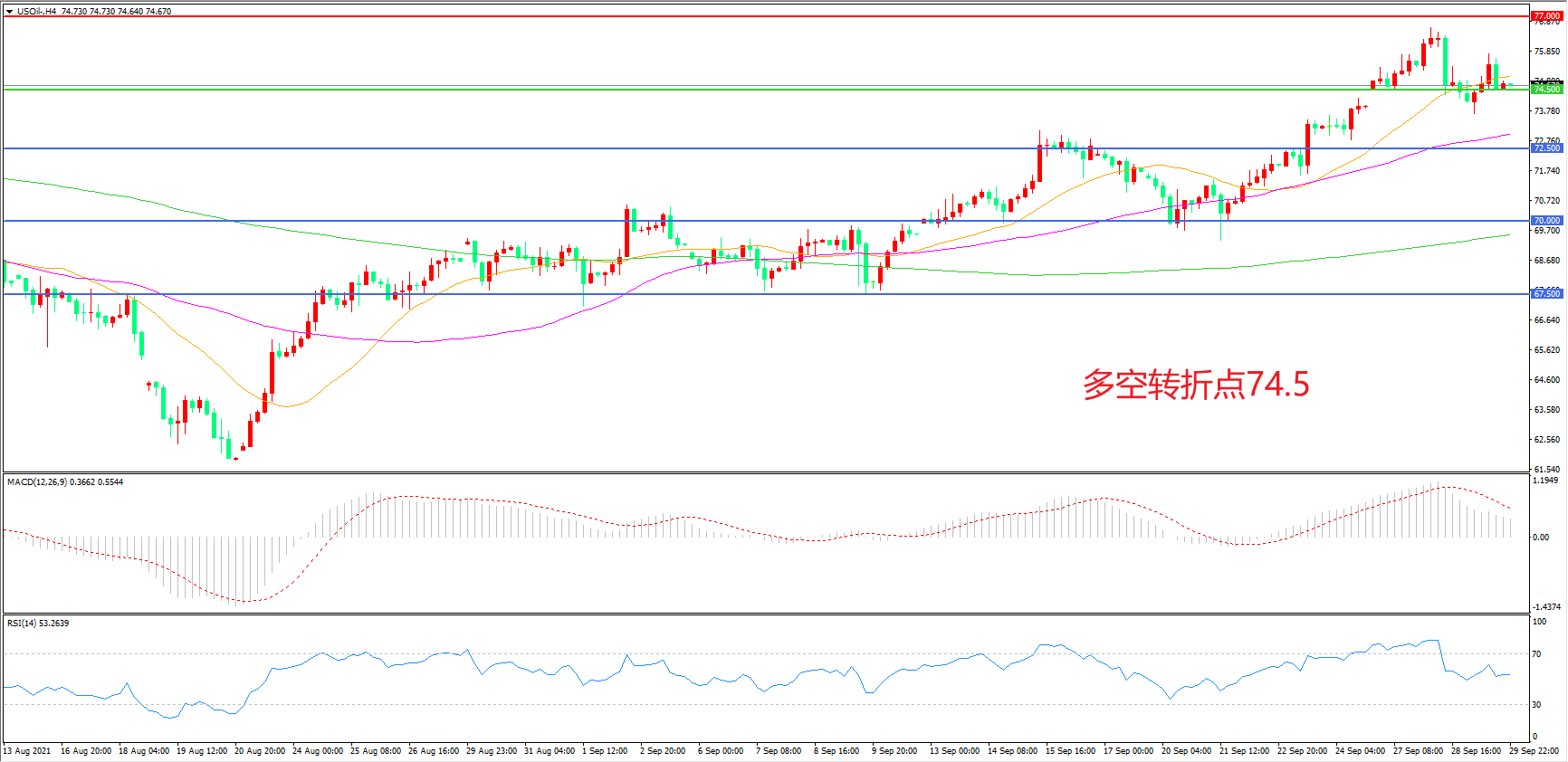 多空转折点:74.50