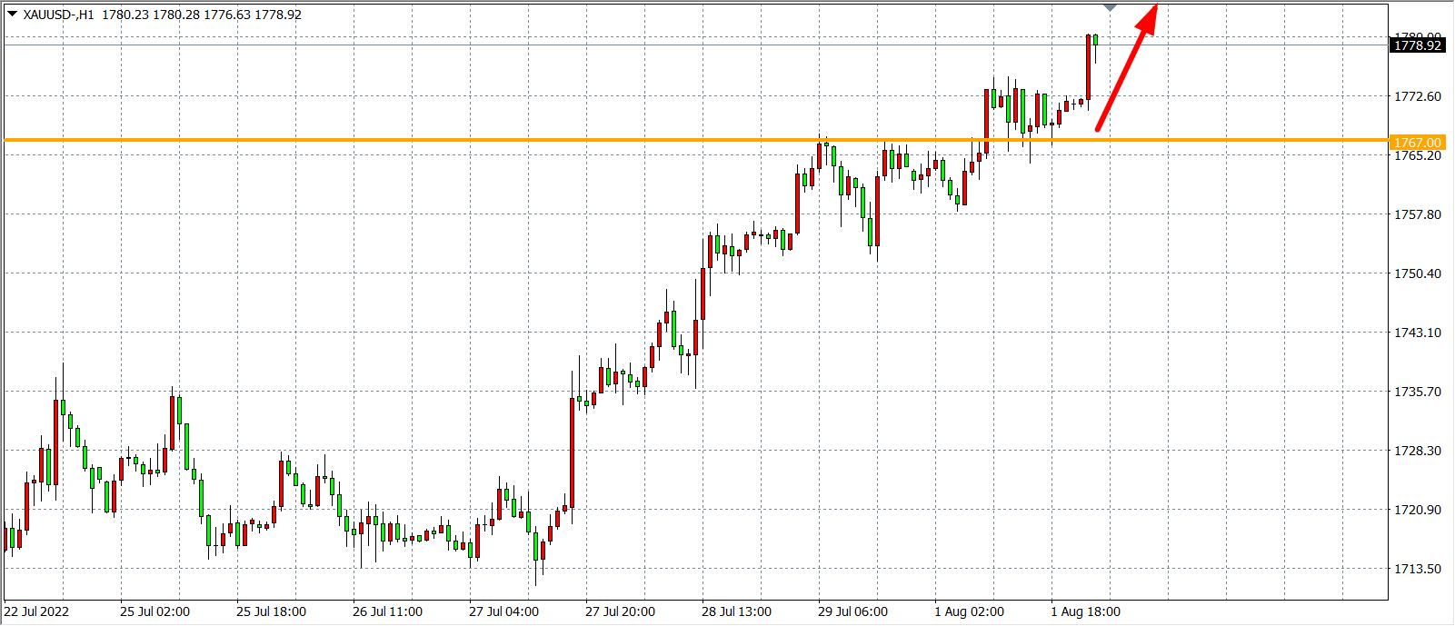 周一(8月1日)欧美制造业数据表现不佳,指向制造业正陷入日益严重的低迷,重燃经济衰退恐慌,美指、美债收益率齐跌,现货黄金延续涨势,突破1770关口,最终收涨0.57%。美国衰退的预期使得美指面临进一步回撤风险,因此以美元计价的黄金将有望获得持续反弹空间。