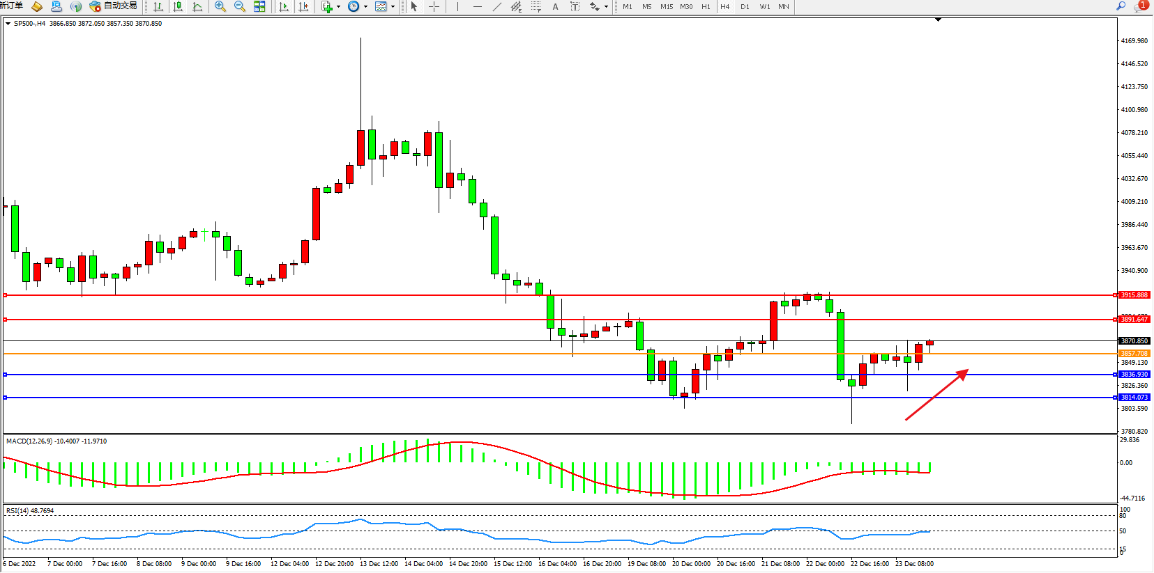 标普SP500——4小时K线图显示: