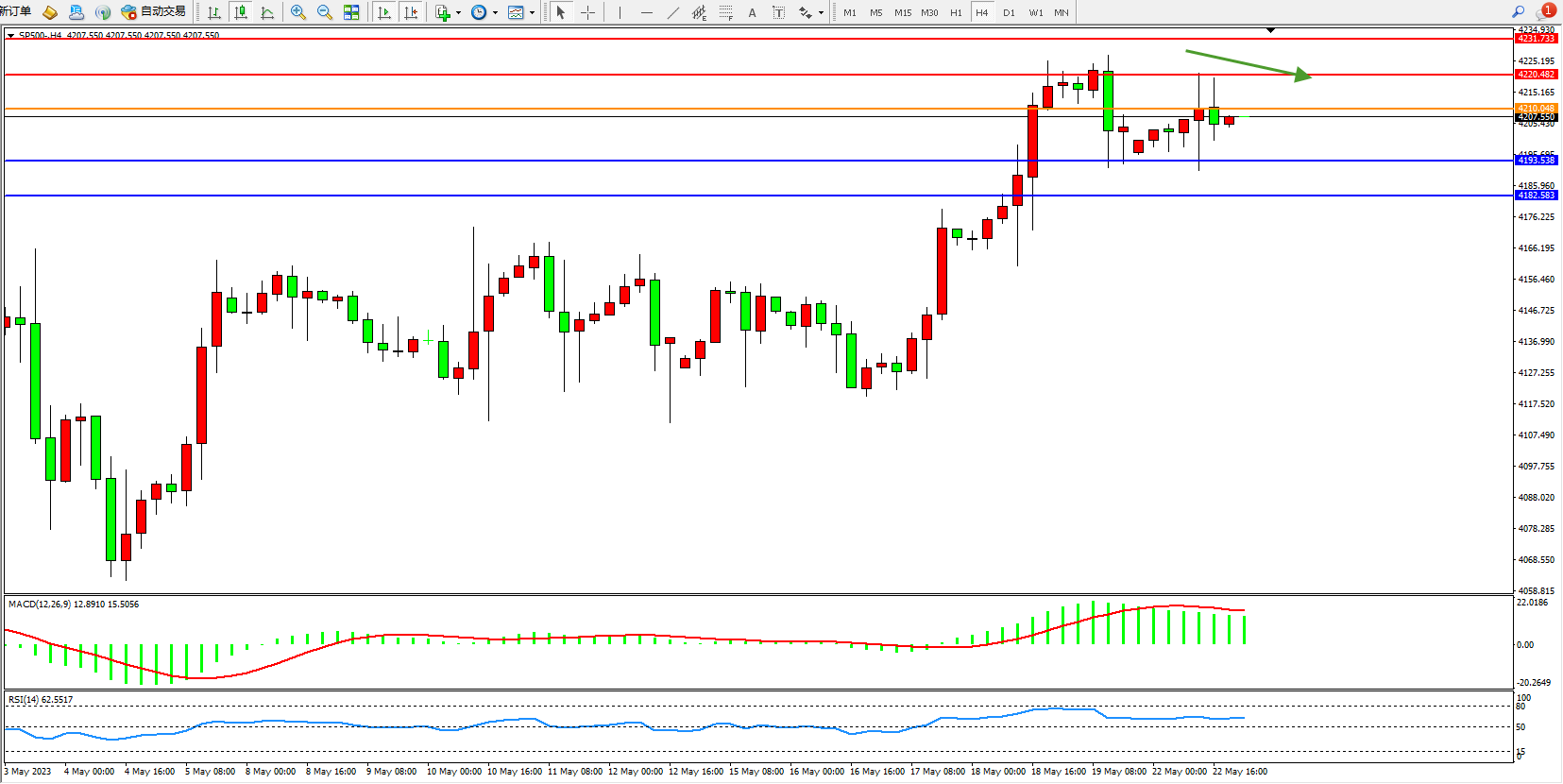 标普SP500——4小时K线图显示: